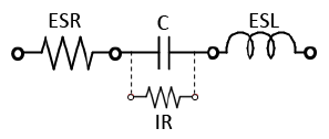 理想的电容器是只有容量成分,但实际的电容器包括电极的电阻因素、电介质的损失、电极电感因素,具体可用图1中的等价电路表示。