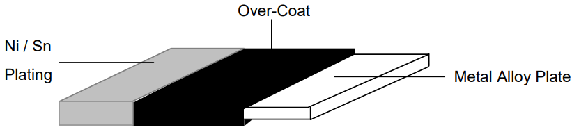 ★注解:Ni/Sn plating:镍/锡镀层 Metal Alloy Plate:合金材料层 Over-Coat:覆膜