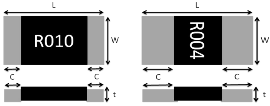 R:电阻阻值,如R040=40mΩ=0.04Ω;R100=100mΩ=0.1Ω;R500=500mΩ=0.5Ω。